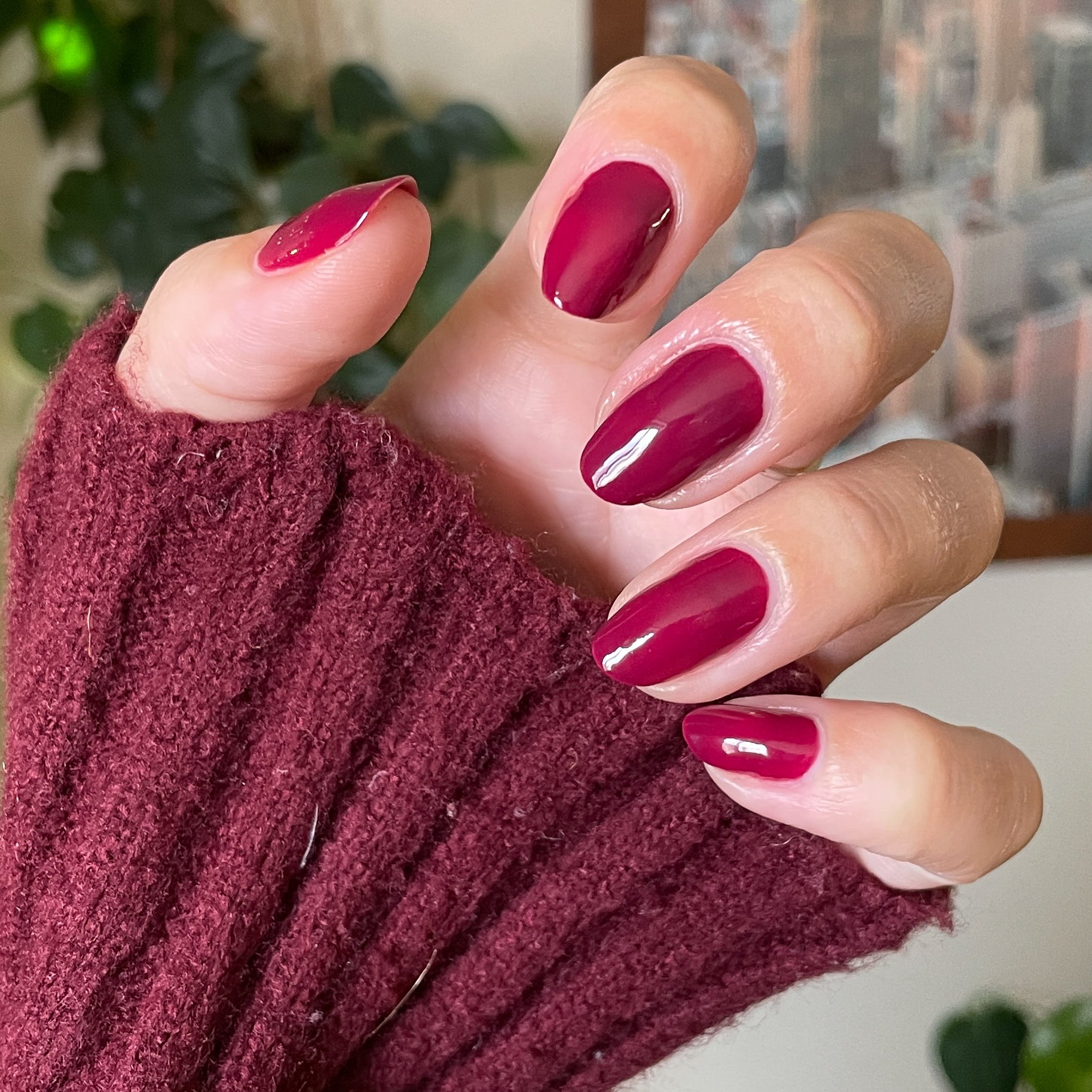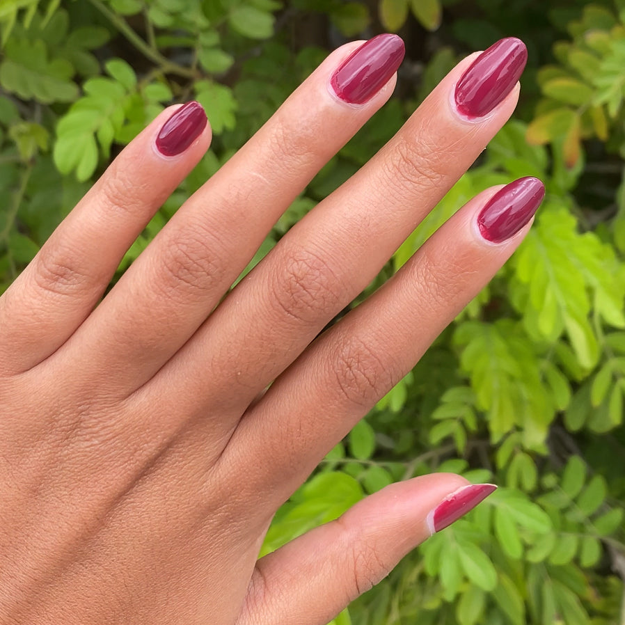 A dark plummy wine red for rich and sophisticated nails.