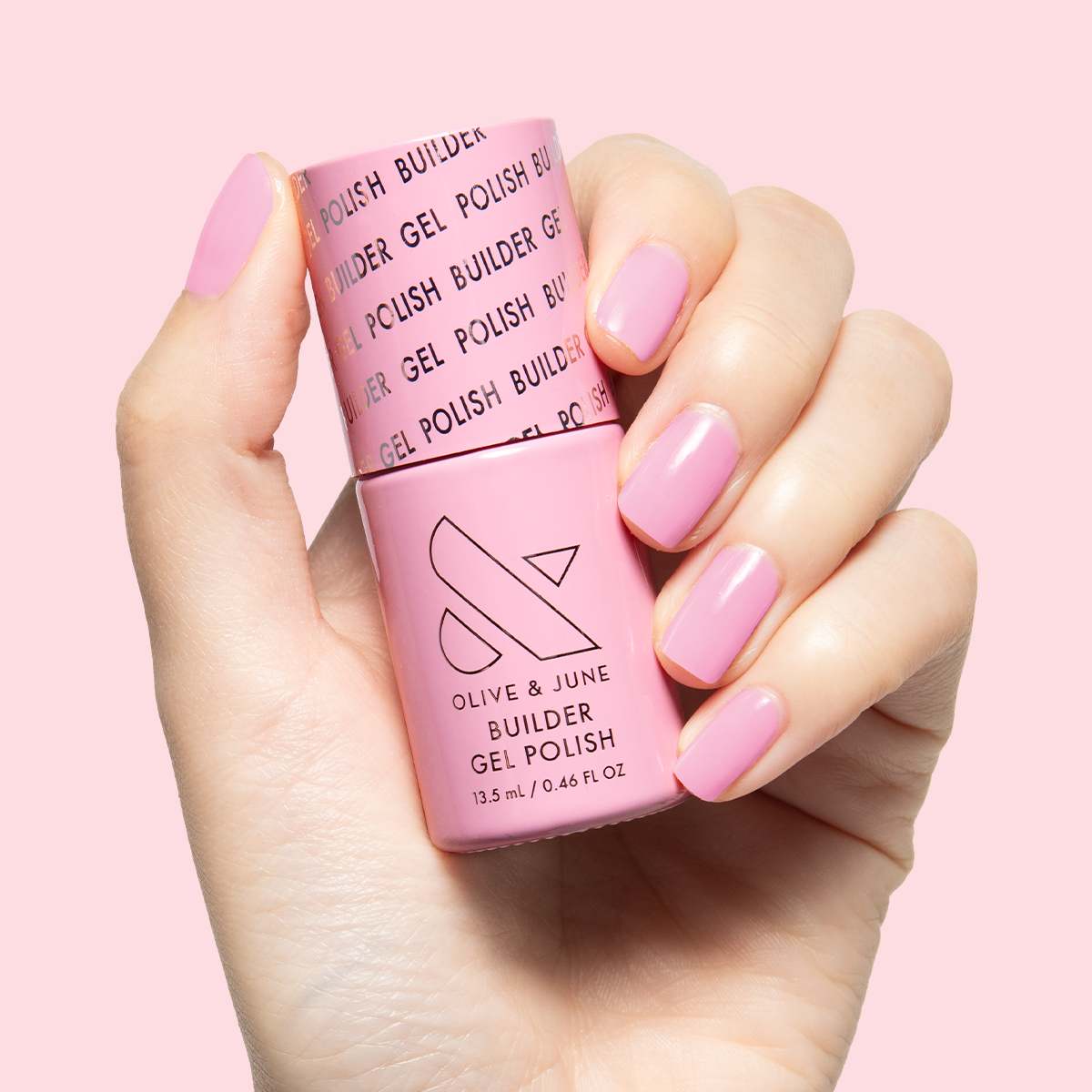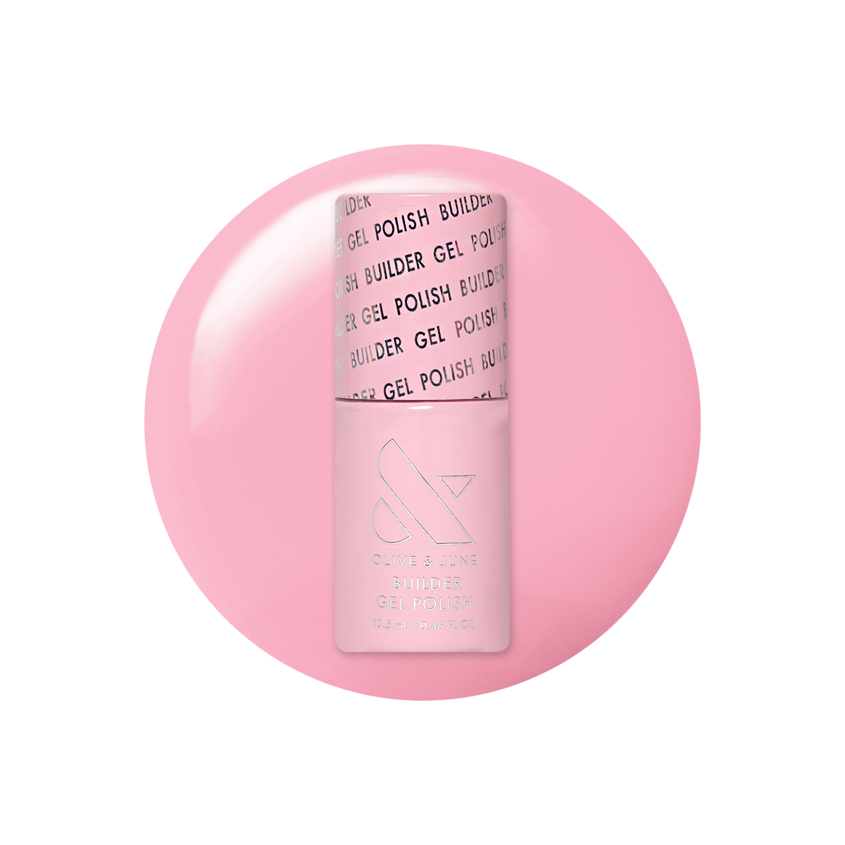 A sheer cool toned pink builder gel for strong nails are that are always in bloom.