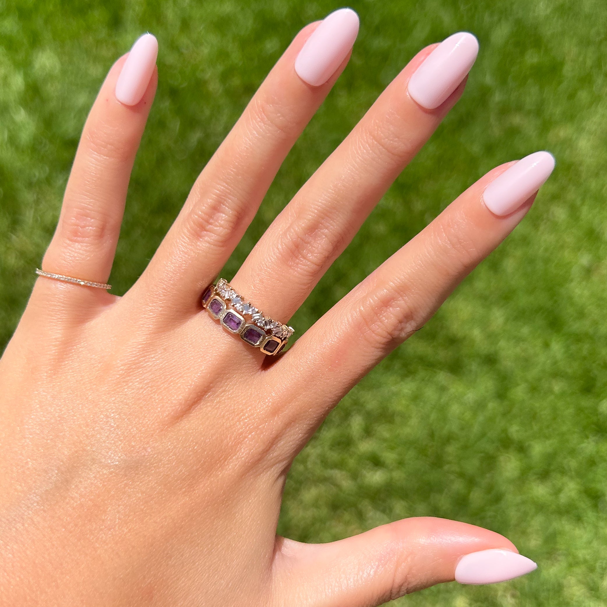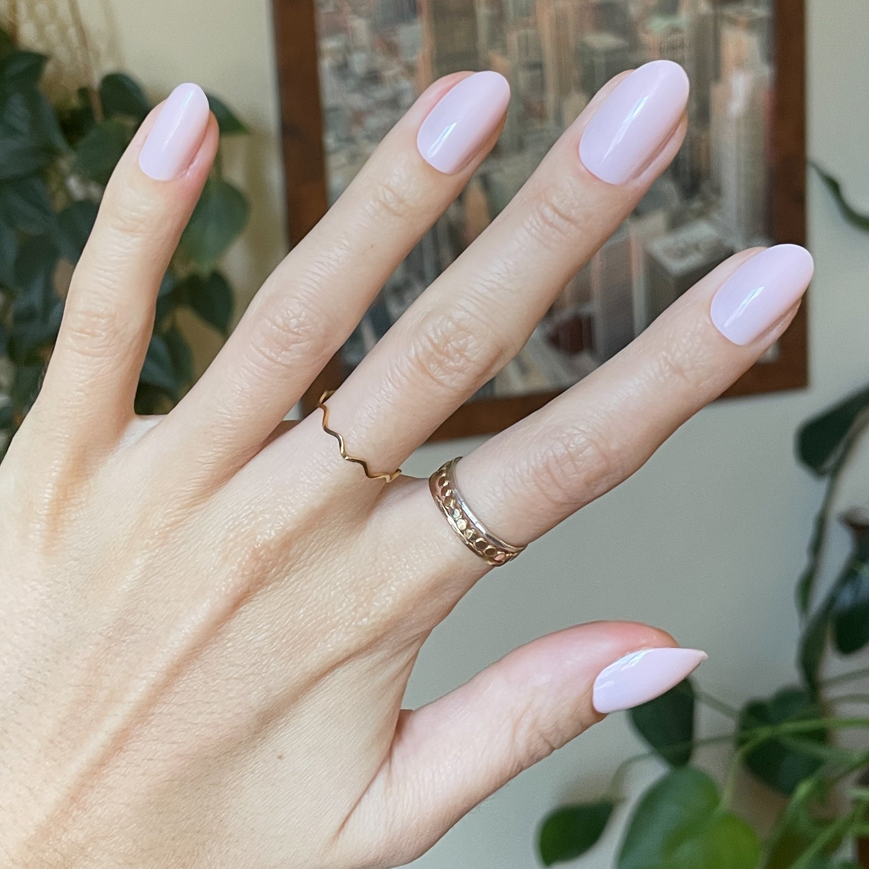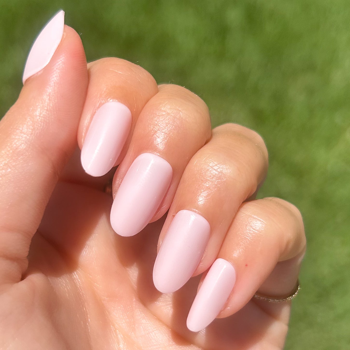 Opaque. glowy baby pink in a medium oval shape creates the perfect goes-with-everything mani.