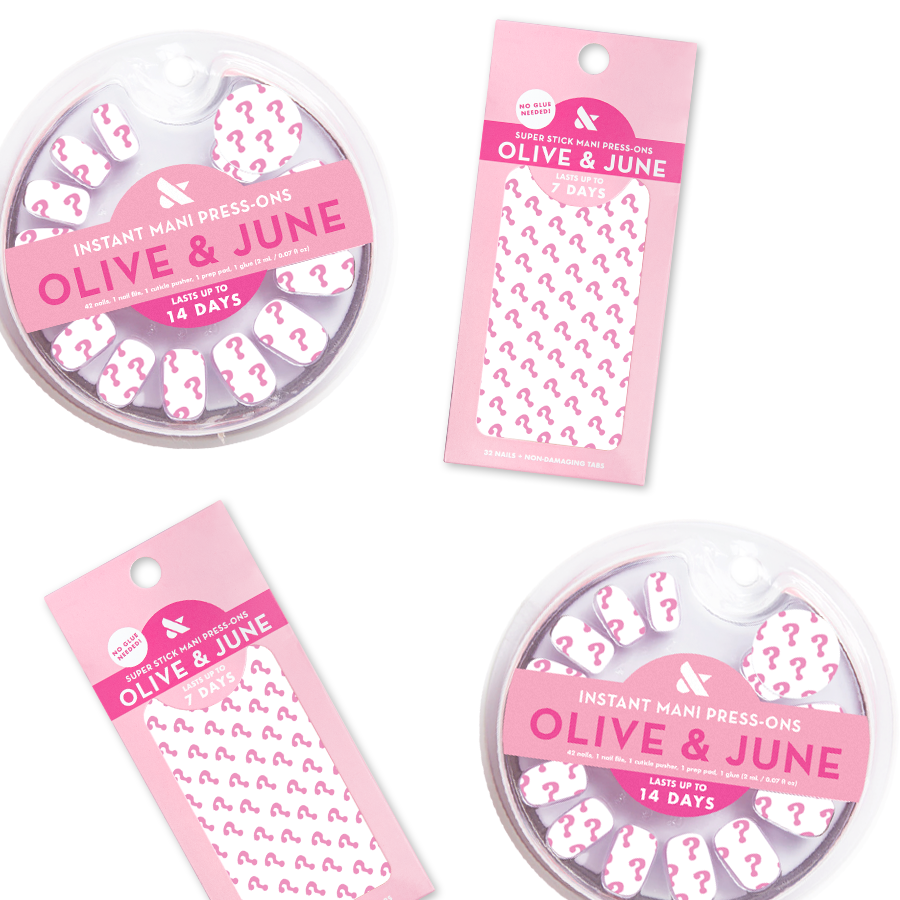Surprise! It’s a box of mystery O&J press-ons  and more valued at over $75. Featuring a mix of bestselling items for a limited time. What will you find?