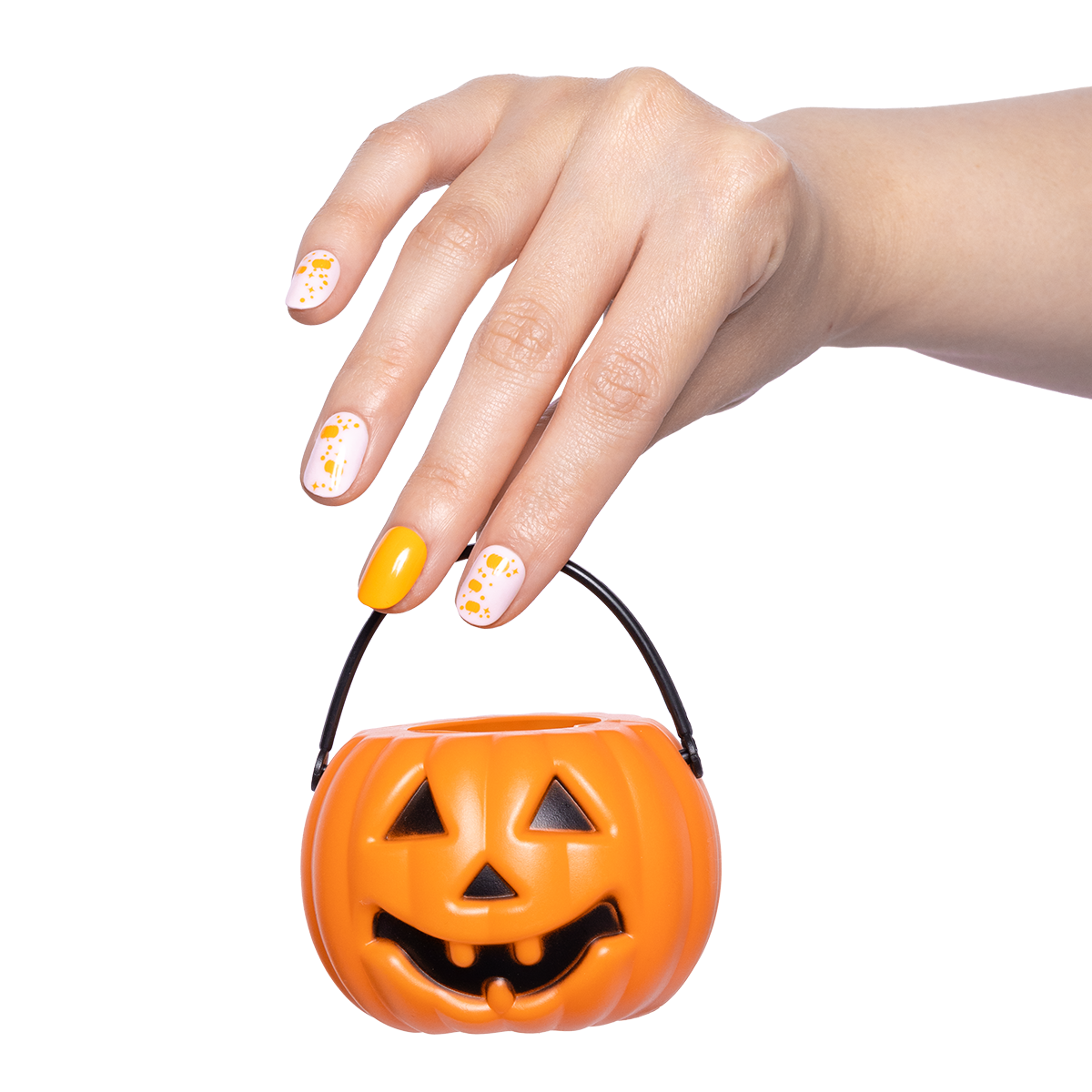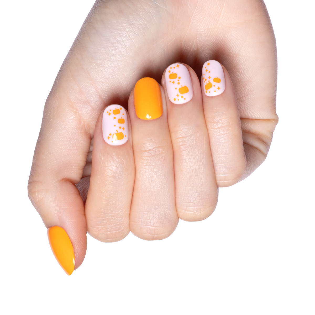 Oh my gourd with this pumpkin mani in an extra short round shape.