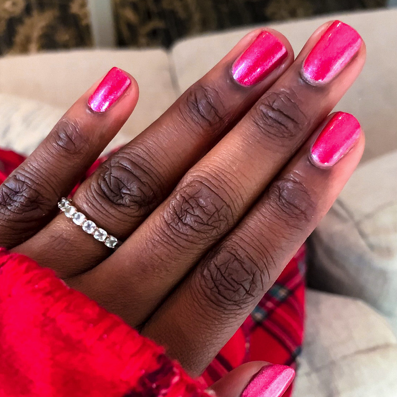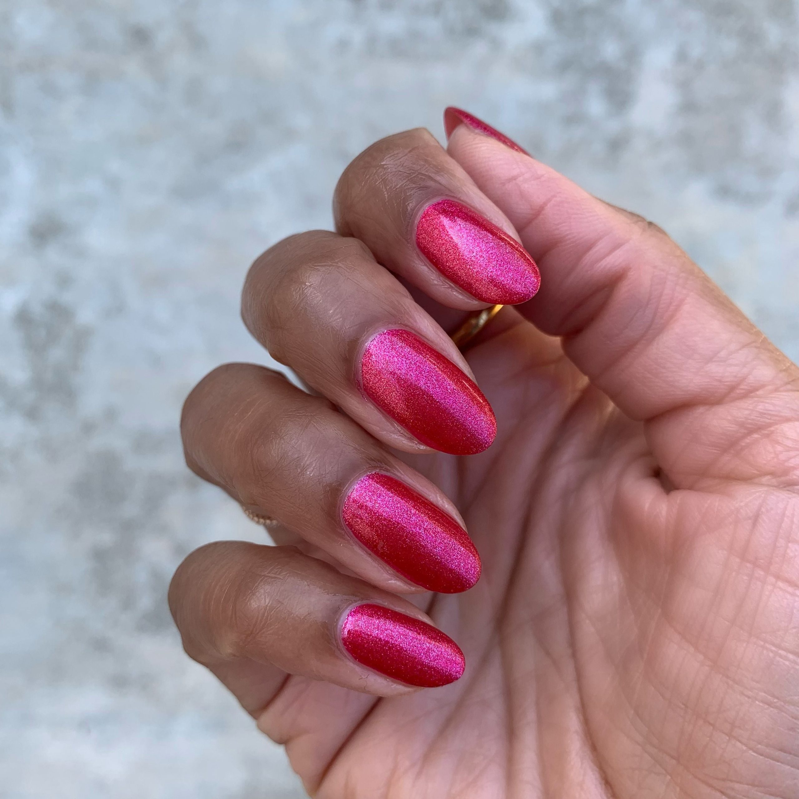 A glam metallic red shimmer.