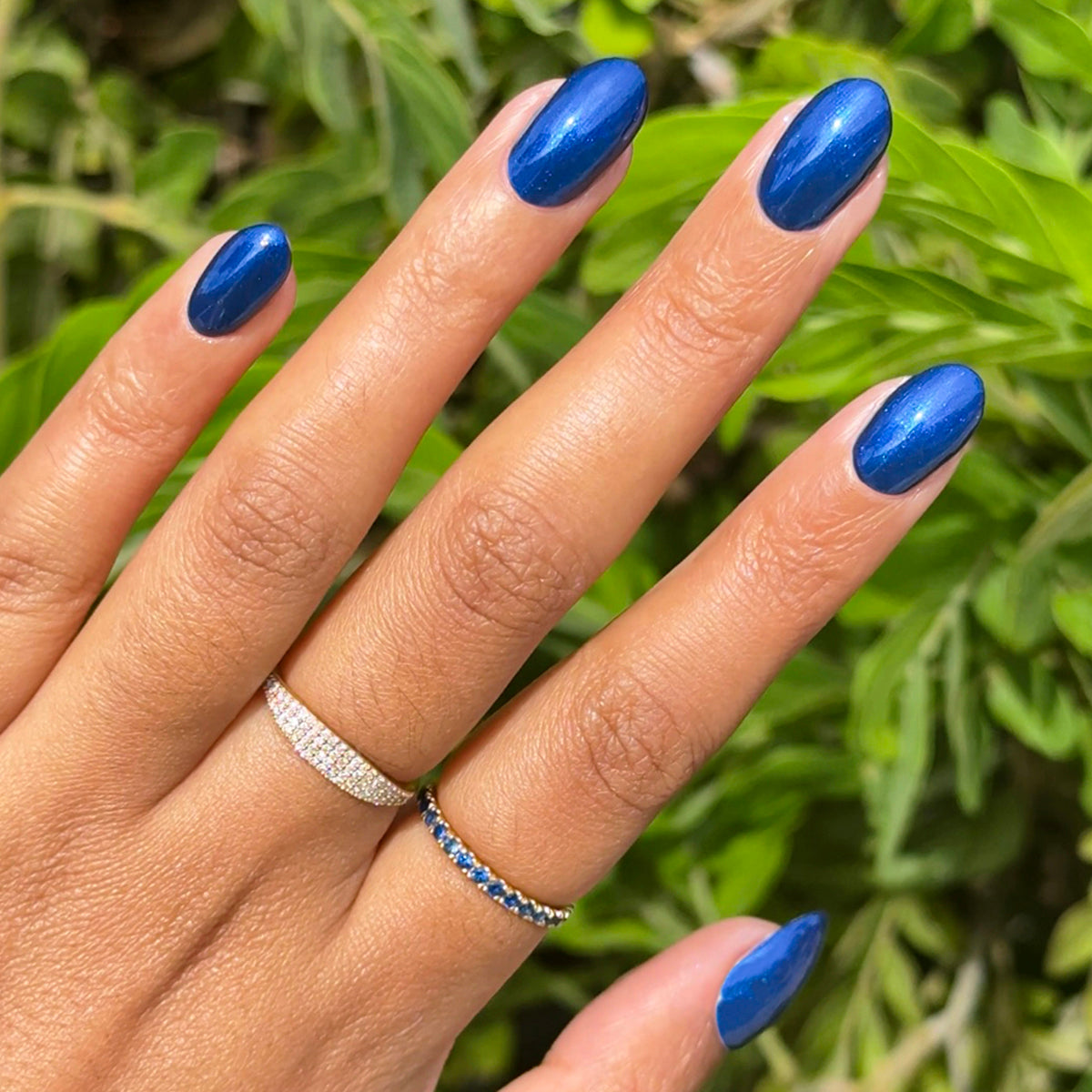 A deep sapphire blue with an ultra shimmery chrome finish for gem-like nails that shine all season.