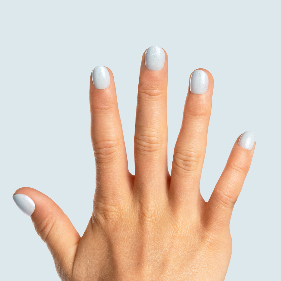 It’s a snow day. and we’re staying in with the chillest snowy mani. This bouncy blue pastel base got caught in a sparkly snowstorm. Brr!