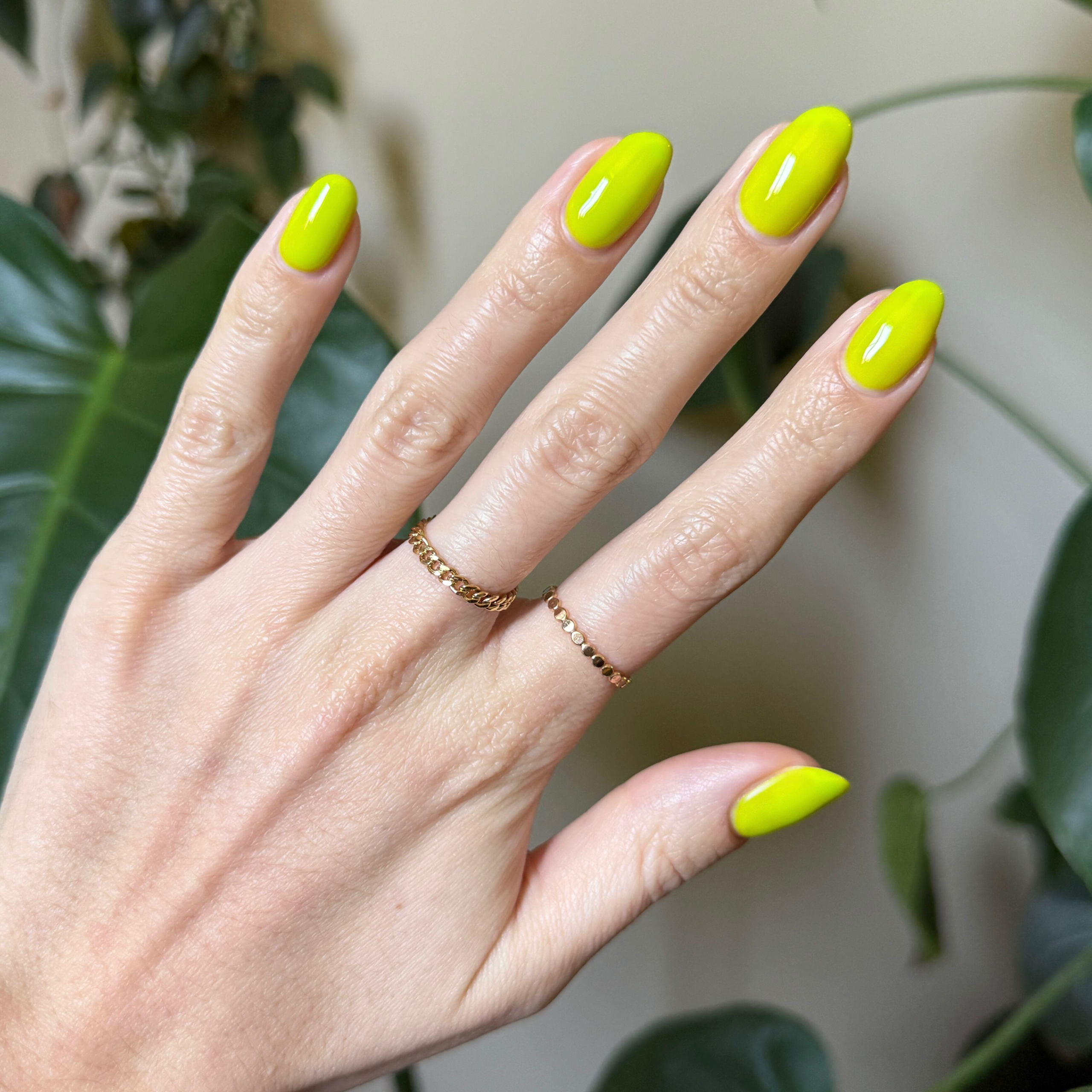 A day-glow bright yellow green shade that’s so bright. you’ll need sunglasses.