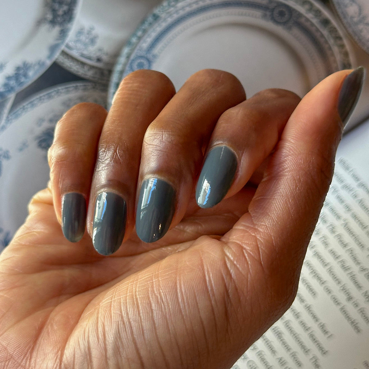 A moody cool slate grey for stormy weather manis and pedis. Bring an umbrella.