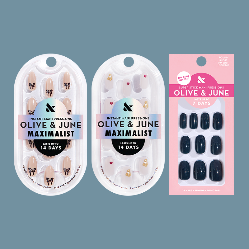 Press-on a perfect winter mani with this set of 3 new press-on manis in our glue and tab formulas.