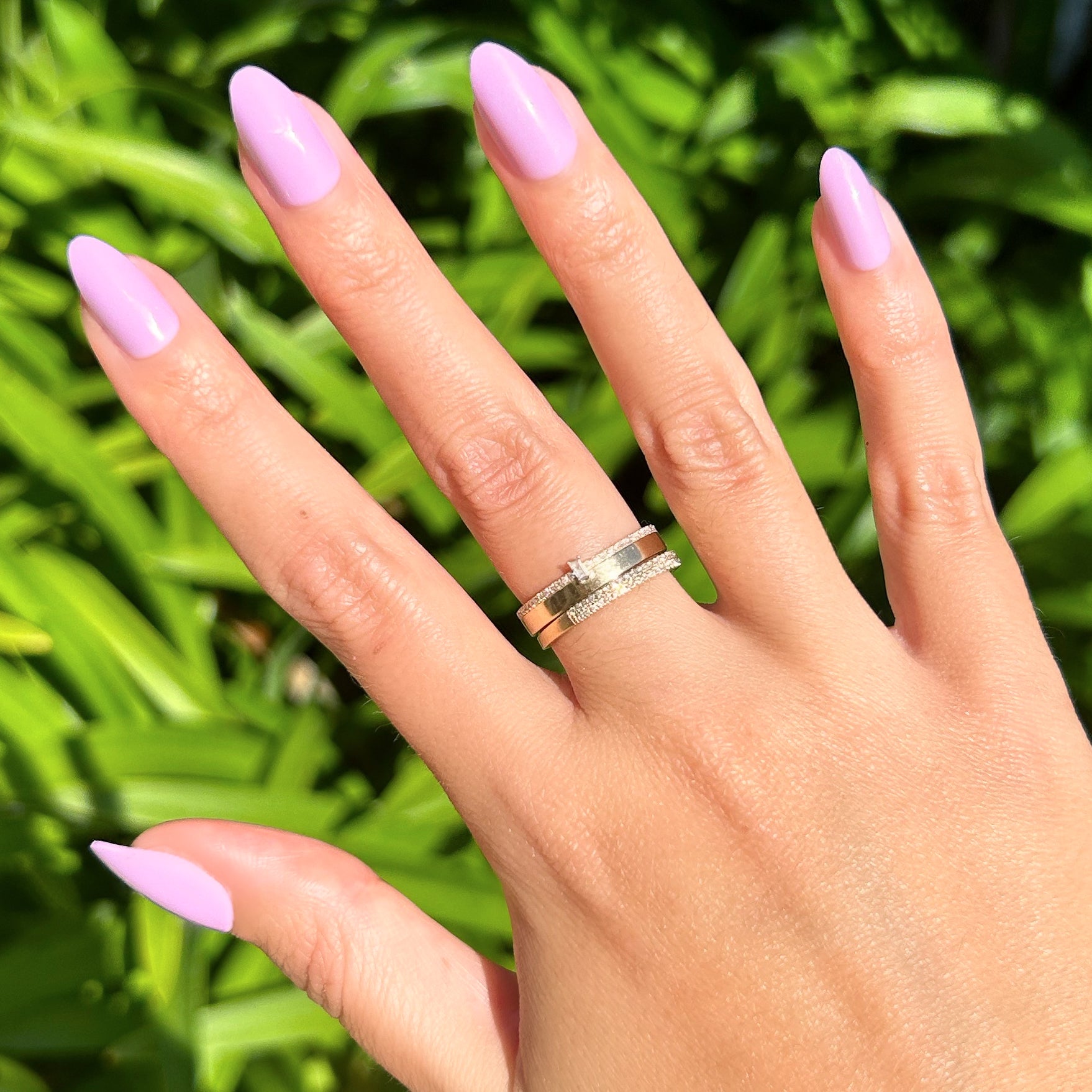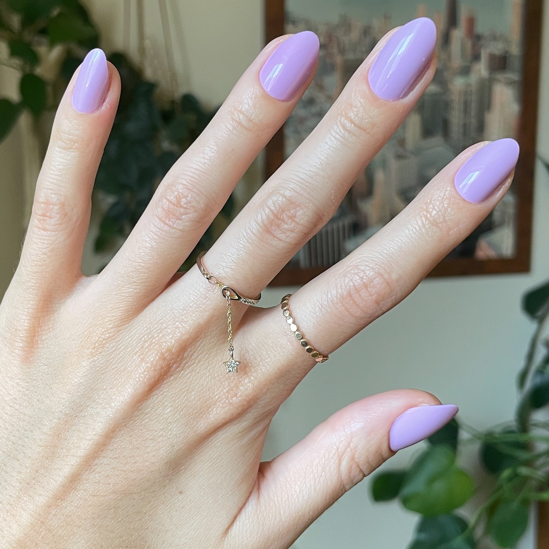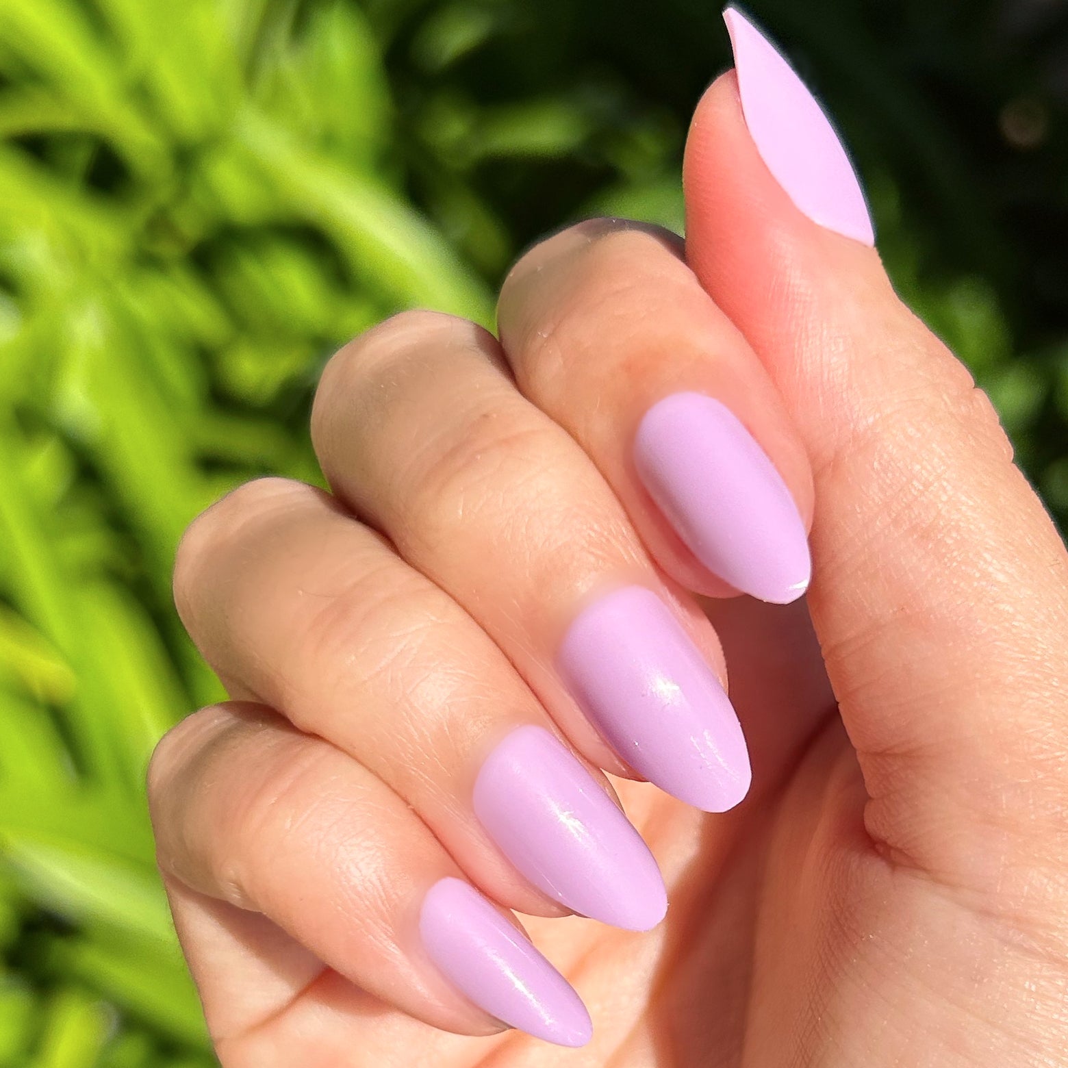 A medium almond mani in a playful lilac purple.